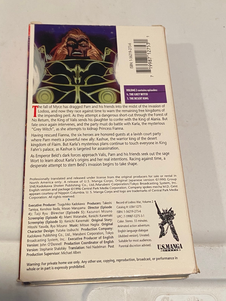 Record Of Lodoss War Volume 2 VHS English *Pre-Owned/Tested* c2