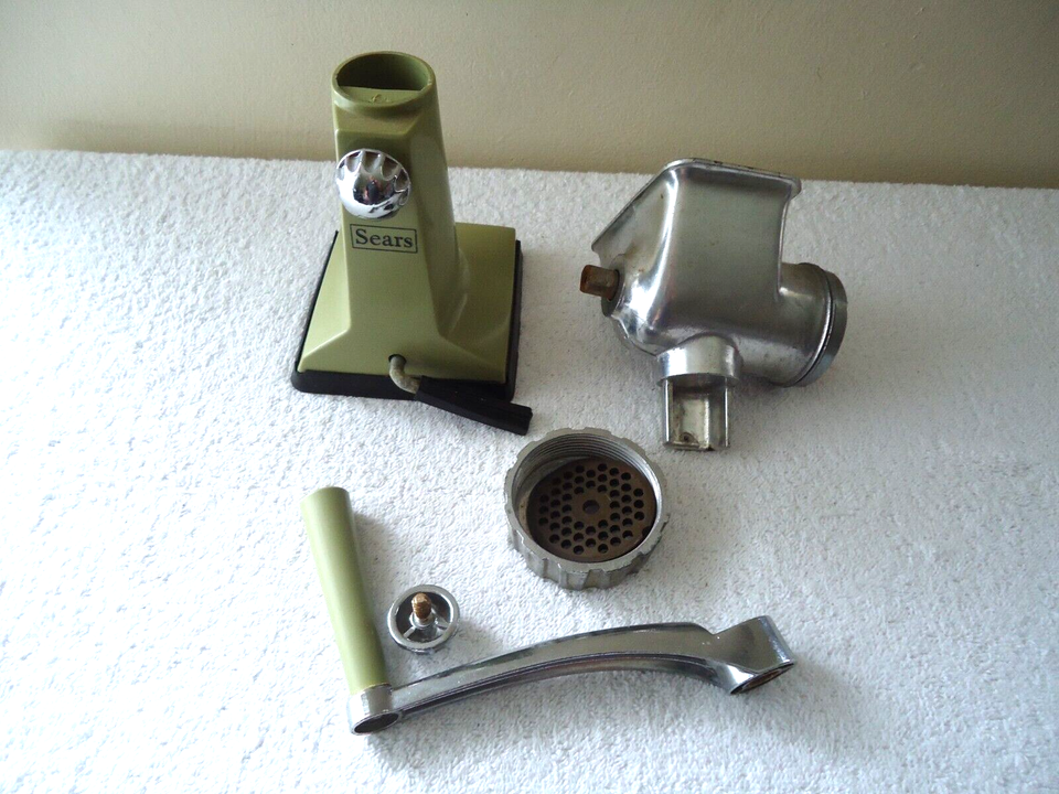Here is a Vintage Sears Tabletop Avocado Green Color Meat Grinder " Great Collectible " See All Pics ".This is a must for any collector,or decorator wanting that vintage retro look.If you have any concerns or questions about this item(s) please ask before bidding / purchasing because this item(s) is being SOLD AS IS.Thank You.-(BLS2-3)