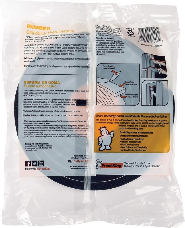 Frost King R516H 1-1/4-Inch wide by 7/16-Inch tall by 10-Foot long. Sponge Rubber Foam Tape, Black. Packaging may vary