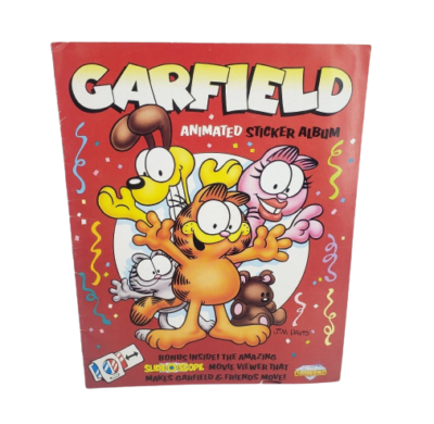 VINTAGE GARFIELD 3D 3-D ANIMATED STICKER ALBUM BOOK W/ A FEW STICKERS JIM DAVIS