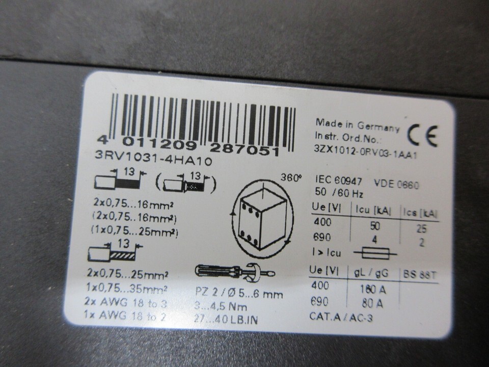 2001 OKUMA ESV-3016 SIEMENS 3RV1031-4HA10 MOTOR STARTER
