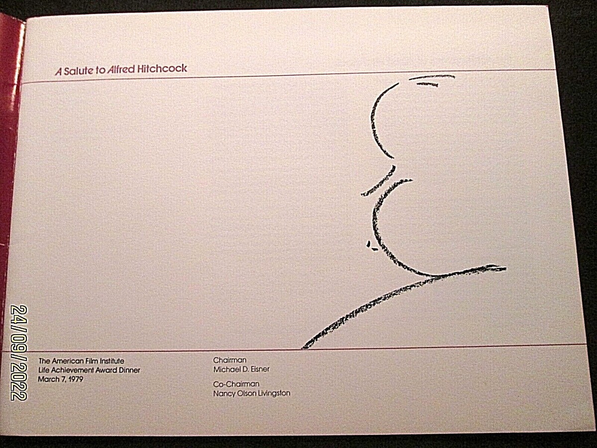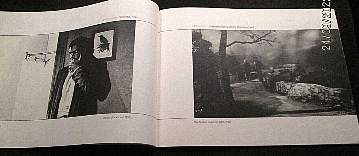ALFRED HITCHCOCK_(SALUTE TO A. HITCHCOCK) RARE AMER,FILM INSTITUTE BOOK FROM 1979 (LOTS OF RARE CANDID PHOTOS, MANY PAGES WHAT IS SHOWN IS JUST A SAMPLE IN BOOK) WAS IN THE COLLECTION OF ACTRESS MAUREEN O SULLIVAN ESTATE ) WHO PLAY JANE IN THE TARZAN SERIES