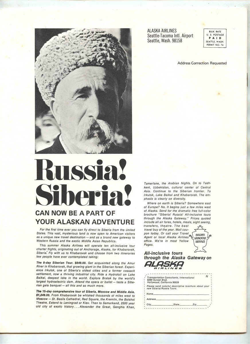 Talking Totem Alaska Airlines Employee Magazine 1970 Russia Siberia Sitka