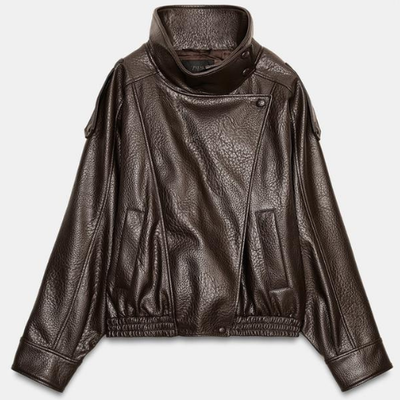 ZARA BNWT 2026. BROWN FAUX LEATHER JACKET BOMBER BIKER. 4391/892/700