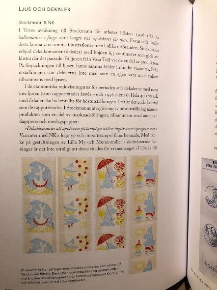 They were exclusively printed for Stockmann luxury department store in Helsinki and NK Stockholm in 1956 to be used for the first commercial Moomin products manufactured by former Vaasan Saippuatehdas (1886-1987) in Vaasa Finland.