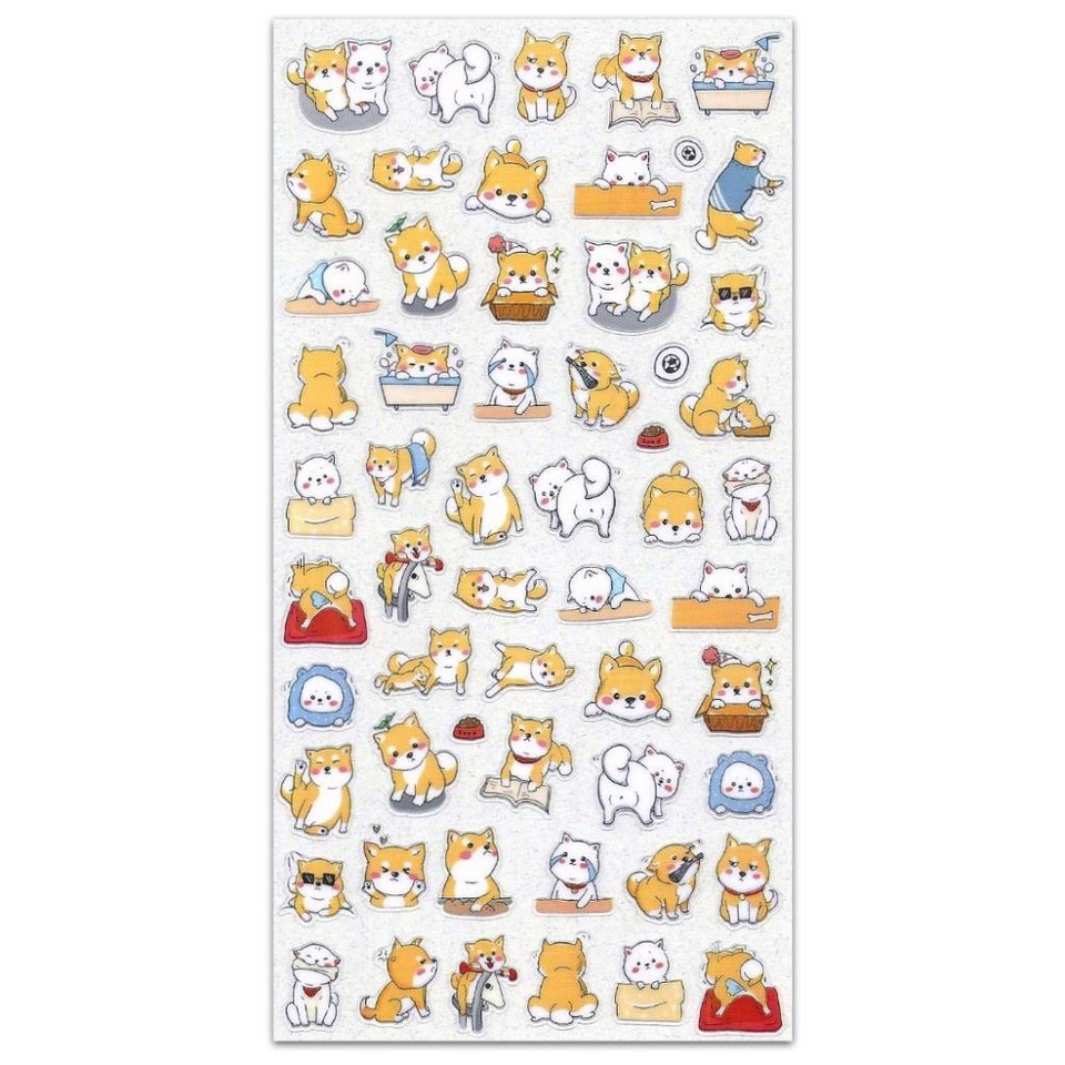 CUTE DOG STICKERS Shiba Inu Fun Animal Sticker Sheet Kawaii Kids Craft Scrapbook