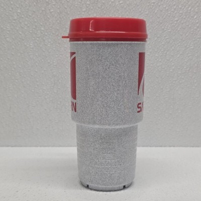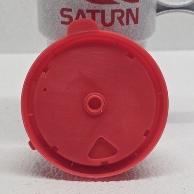 Vintage SATURN Car Company Gray Red Coffee Travel Mug Plastic Cup. Images show actual item that will ship.