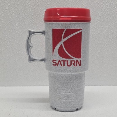 Vintage SATURN Car Company Gray Red Coffee Travel Mug Plastic Cup