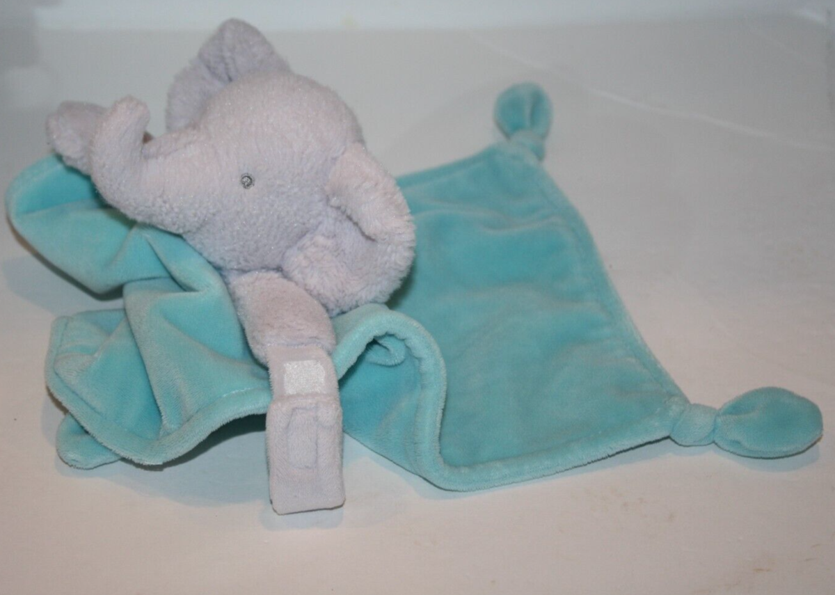 Carters Elephant Rattle Aqua Blue Plush Lovey Security Blanket Pacifier Holder
