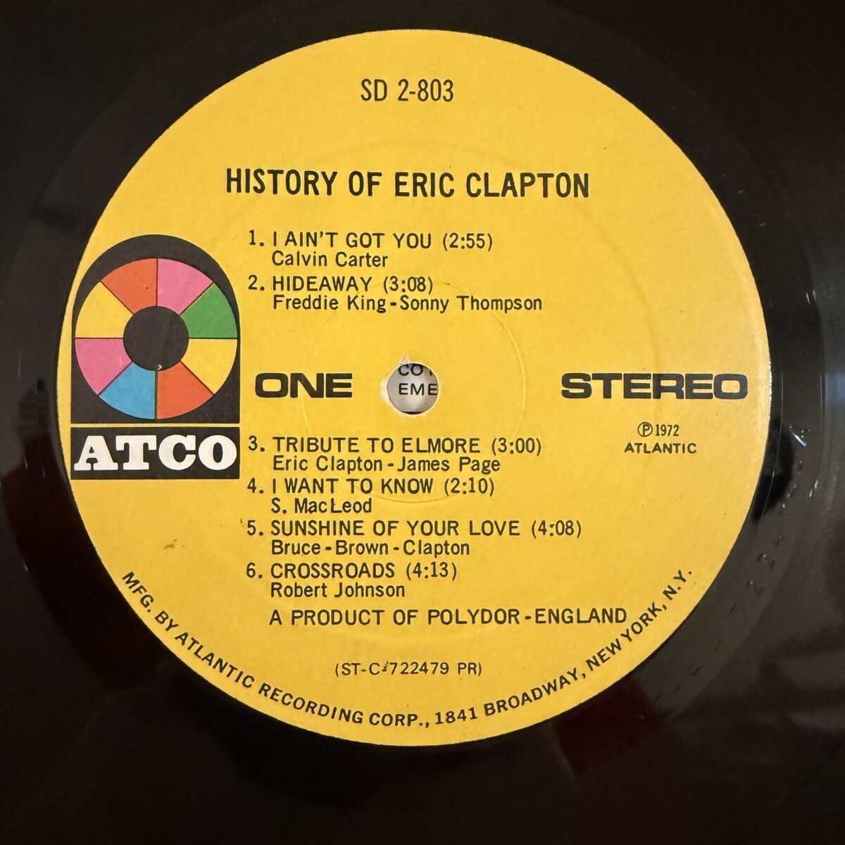 Eric Clapton The History of Eric Clapton Vinyl 2 LP Atco SD2-803 Layla Badge