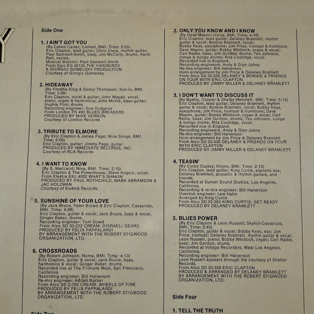 Cream/Derek and the Dominos/Eric Clapton/The Yardbirds |