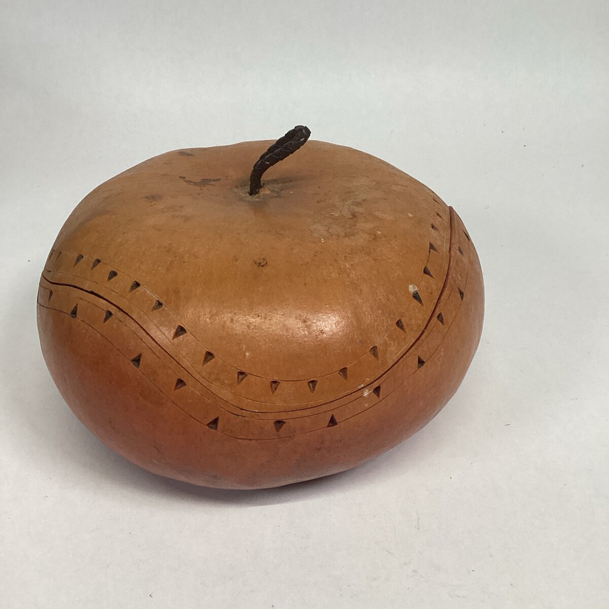 Vintage Handmade Hawaiian Gourd Container - 7.5”Dx5.5”H