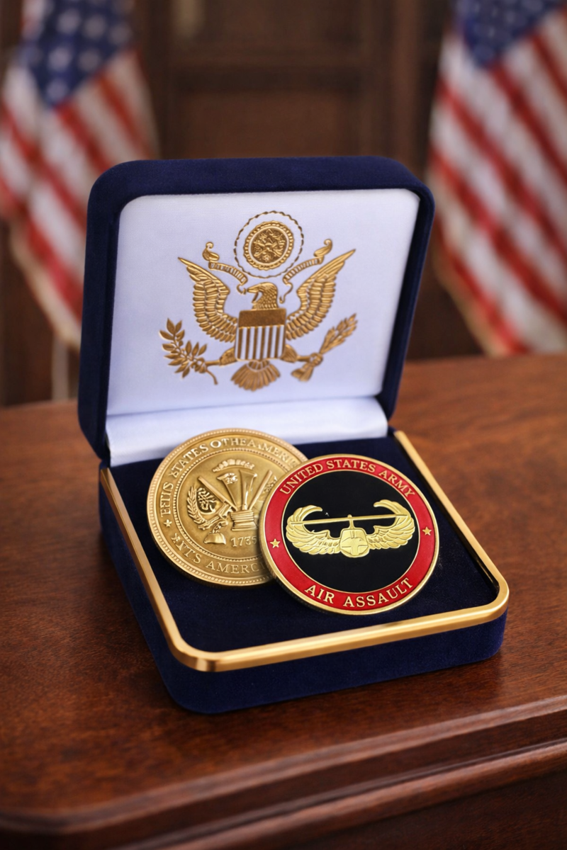 US Army Air Assault Airborne School Challenge Coin with Velvet Case