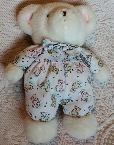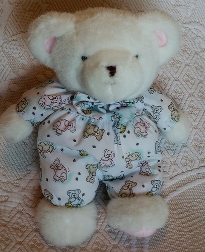 Pillowy body is white with pastel teddy bear print
