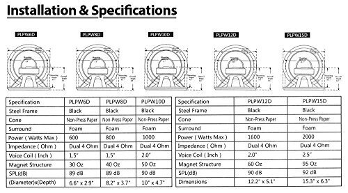 Pyle 8? 800W Car Subwoofer ? Dual Voice Coil, Foam Surround, Black Basket