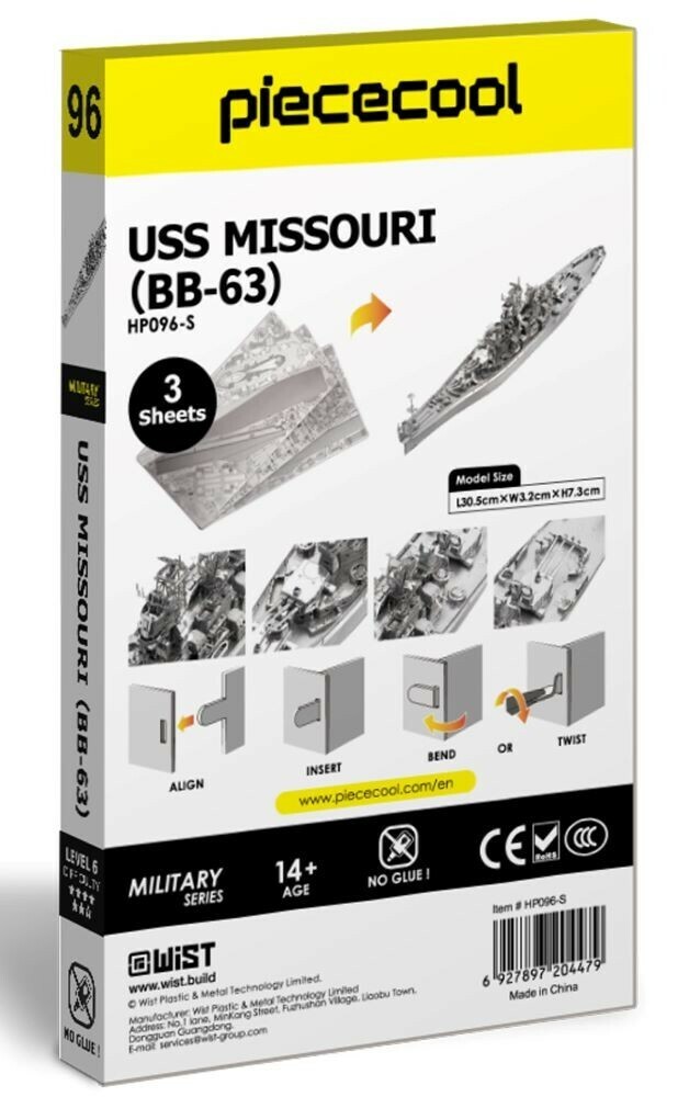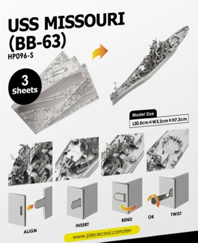 USS Missouri BB-63 3D Metal Model Puzzle/Kit by Piececool
