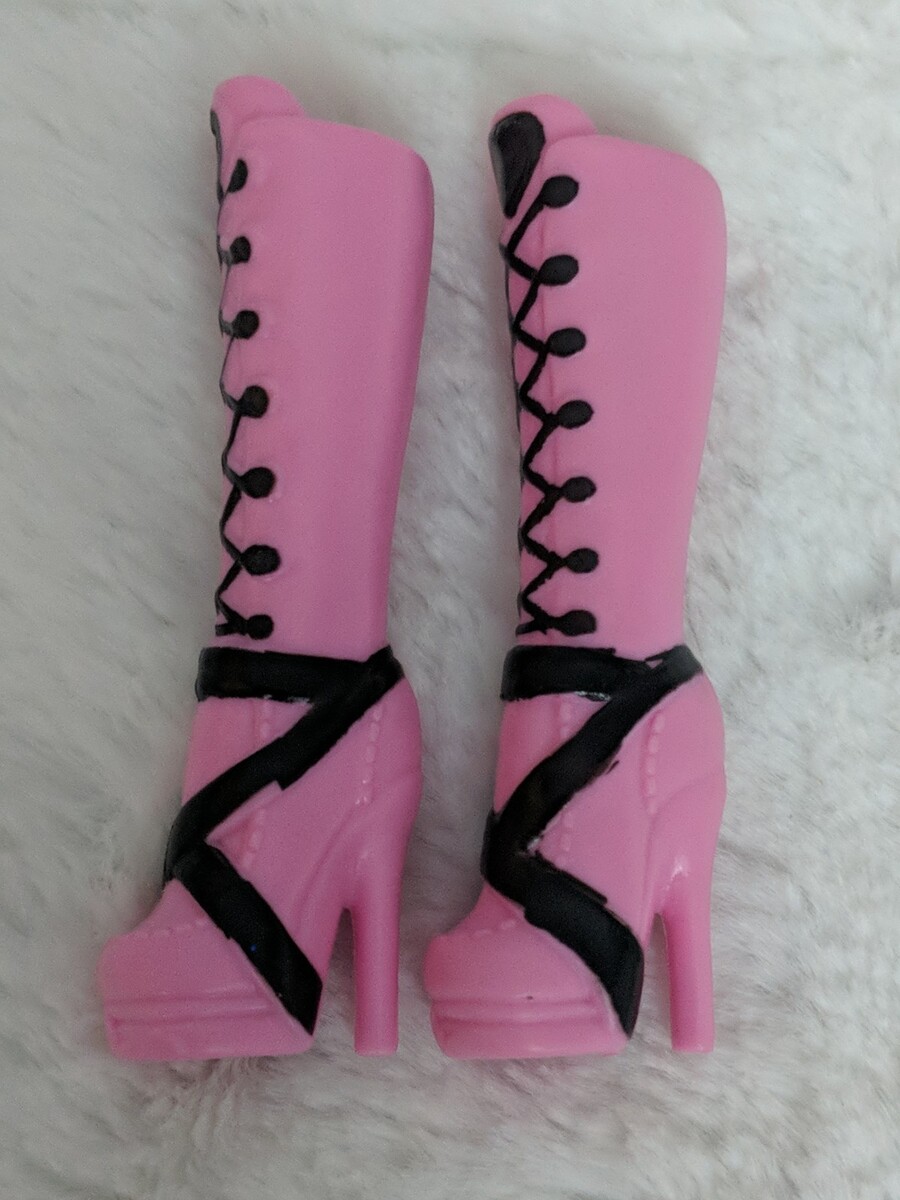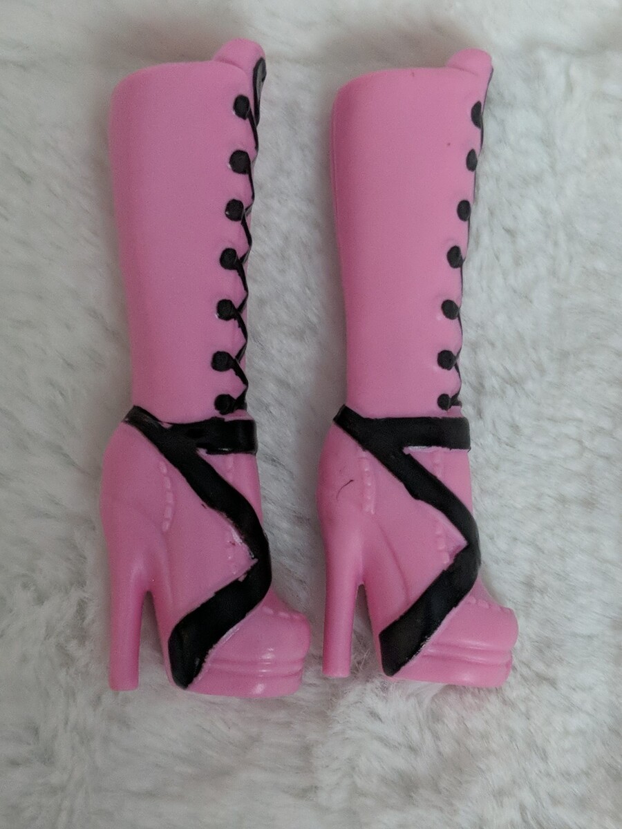 Monster High Doll Shoes Draculaura Pink Boots With Black Hearts 1st Wave. In VGUC, please see pictures.