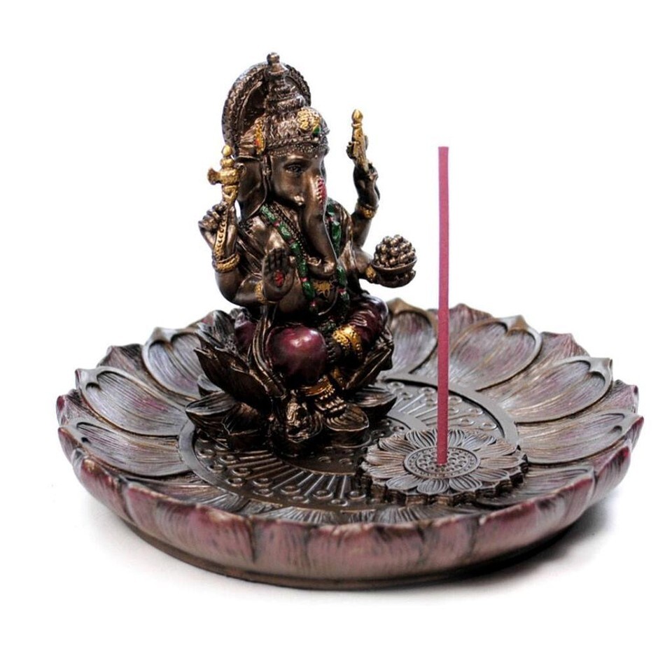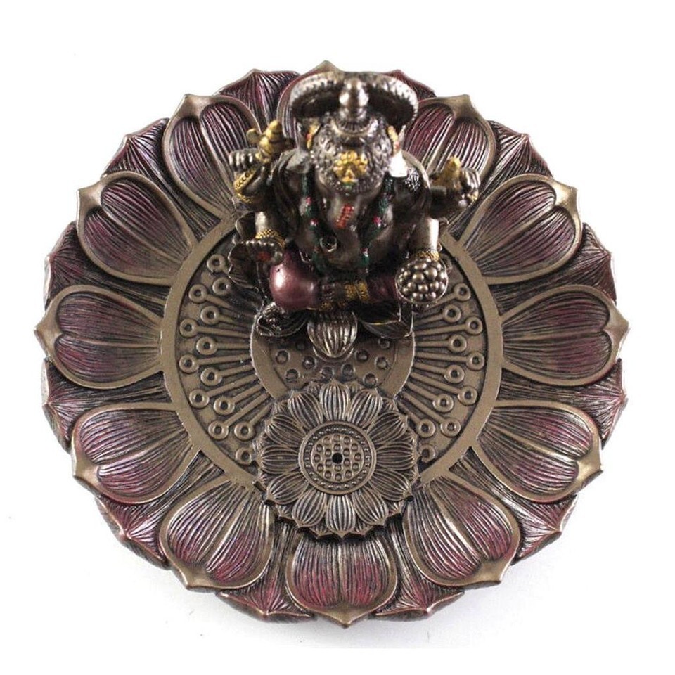 GANESHA ROUND INCENSE BURNER 3.5" Hindu Elephant God Resin Statue Ganesh Holder