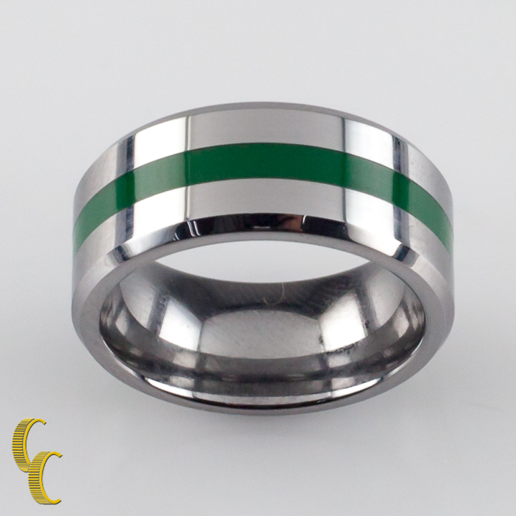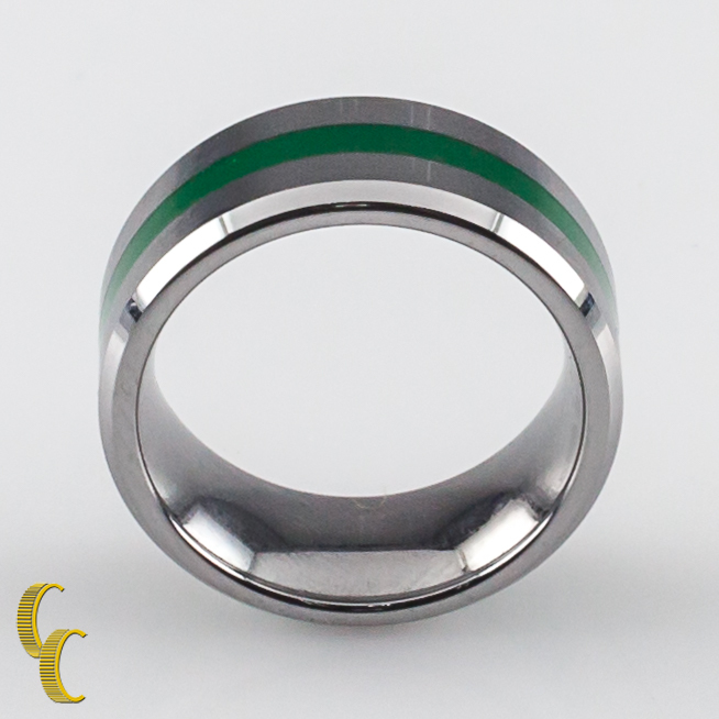 Men's Tungsten Carbide Band Ring with Green Stripe Size 5