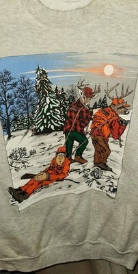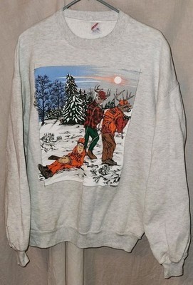 VTG Jerzees Mens XL USA Made Sweatshirt Artwear Evans Deer Dragging Hunter