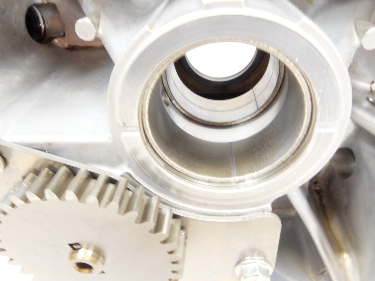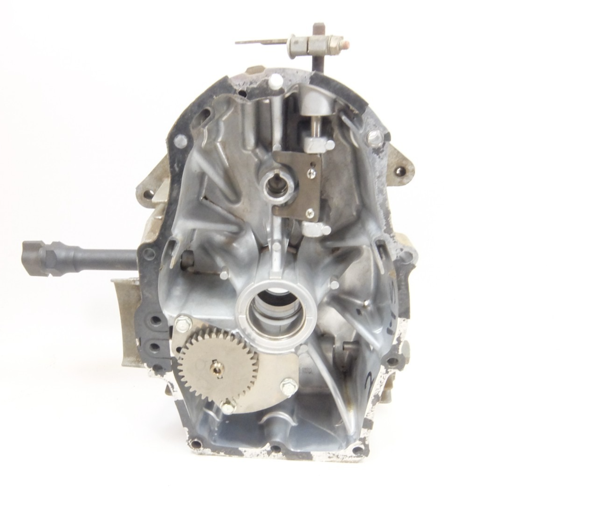 This is a used crank case sump cover that was removed from the tractor below. It includes the governor arm, the oil pump, and the oil drain pipe as shown. It will need to be de-gasketized and the crank seal should be changed.