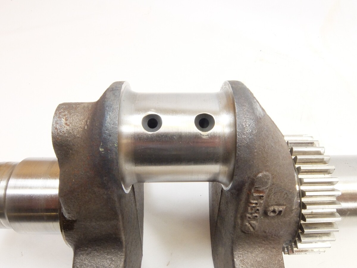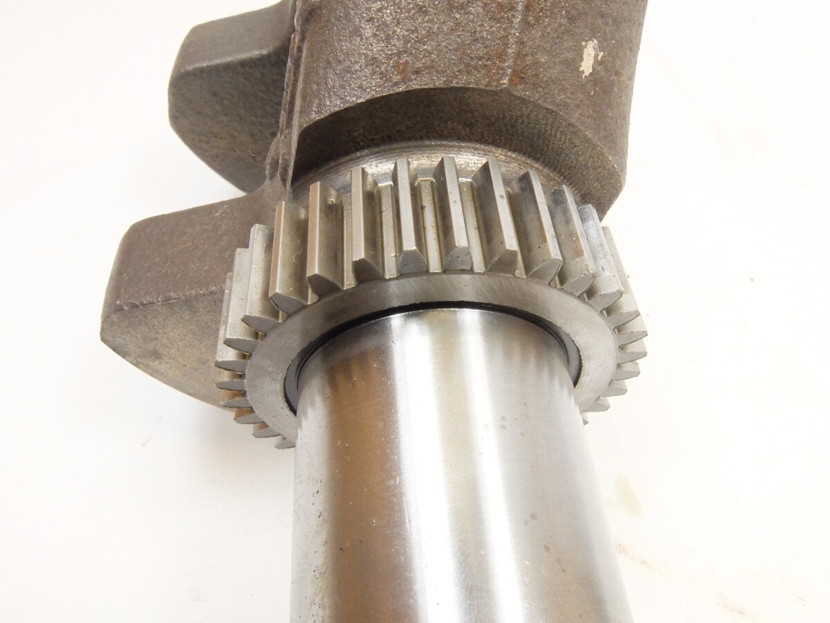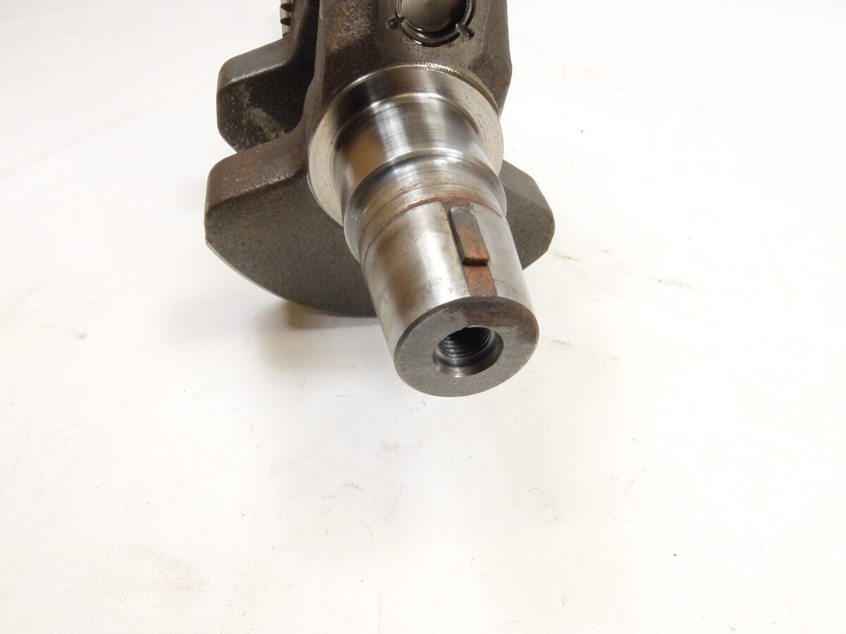 This is a used crank shaft from the tractor below. The crank journals show some lining where the crank seals run on the shaft and may need to be buffed.