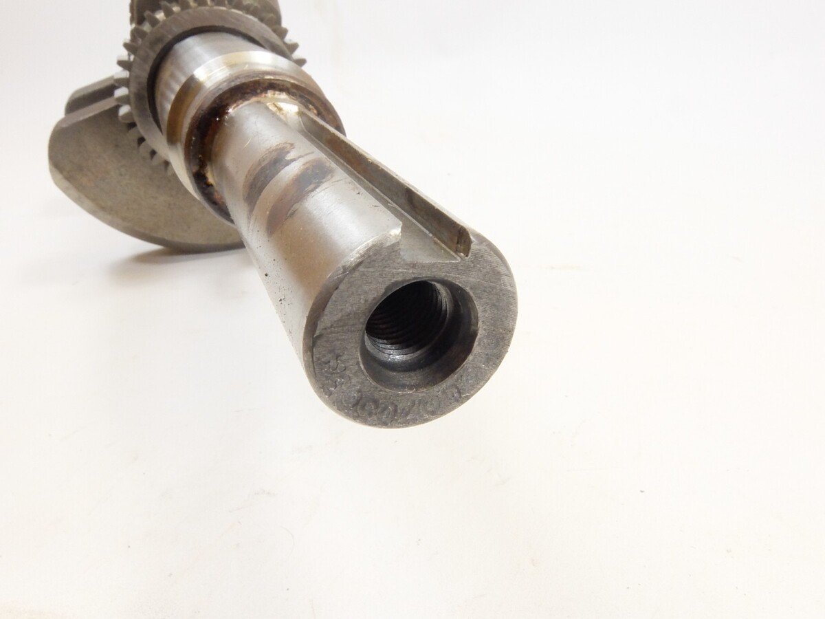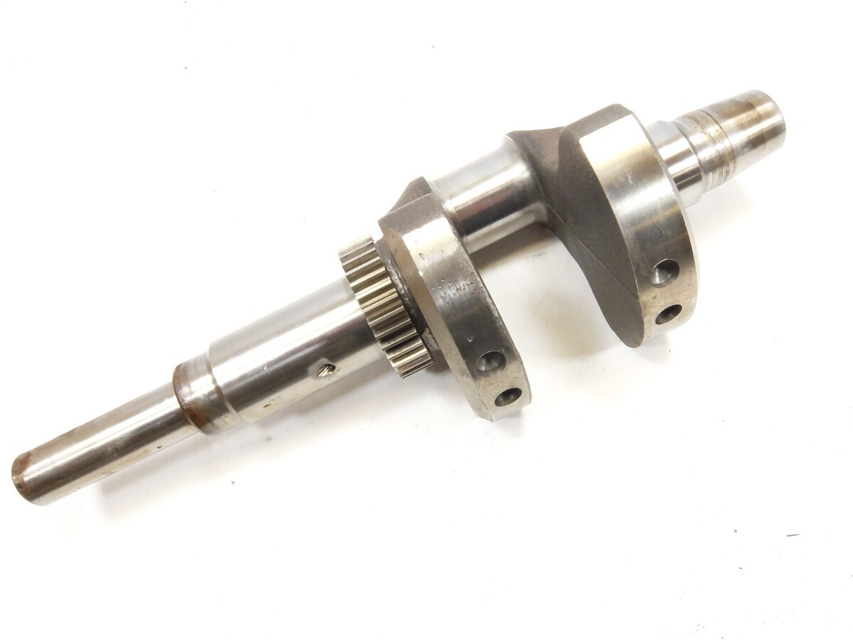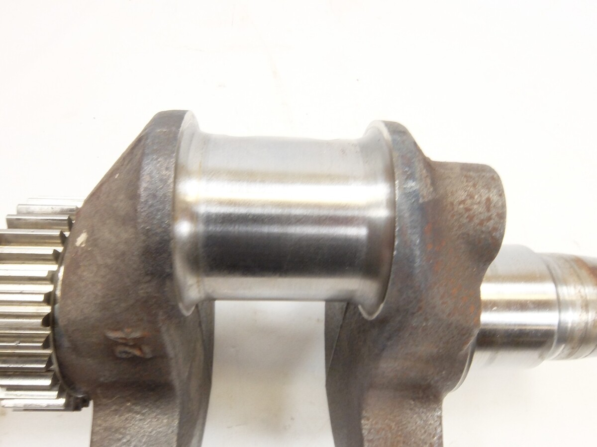 This is a used crank shaft from the tractor below. The crank journals show some lining where the crank seals run on the shaft and may need to be buffed.