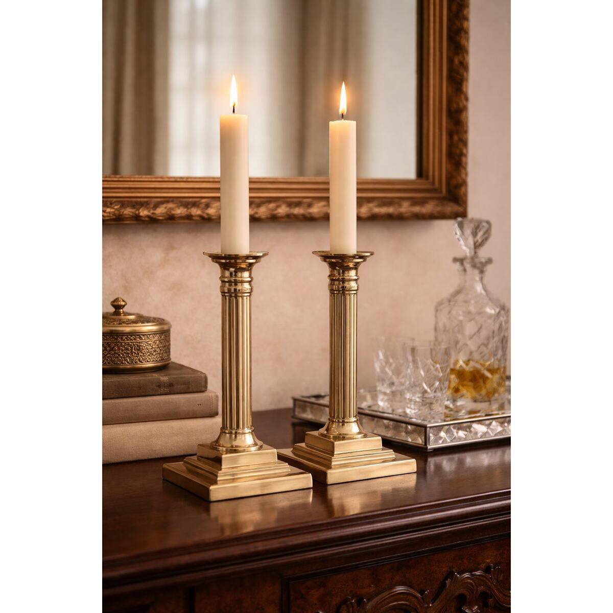 VTG Valsan Portugal Brass Corinthian Column Candlesticks Roman Style 10" Pair