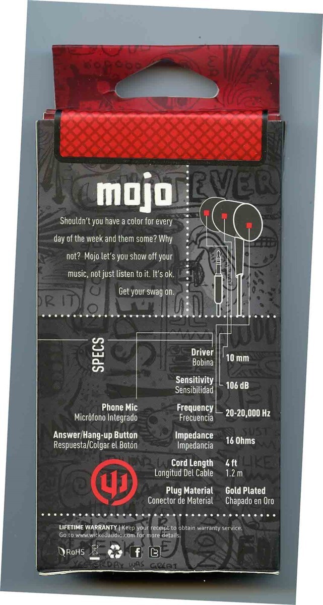 Wicked Audio WI2255 IN-ear MOJO EARbuds with phone mic. New in Sealed Package