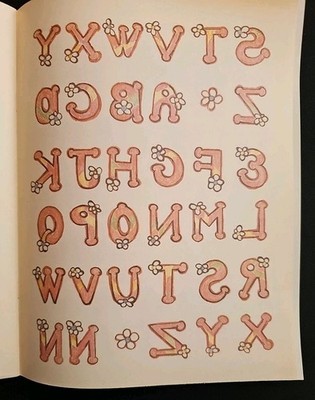 This is the original vintage transfer book, not reproductions. Designs are shown throughout the pages, and the book is complete. Condition is vintage used, with cover wear consistent with age and handling. Interior pages show light toning and age wear but remain intact.