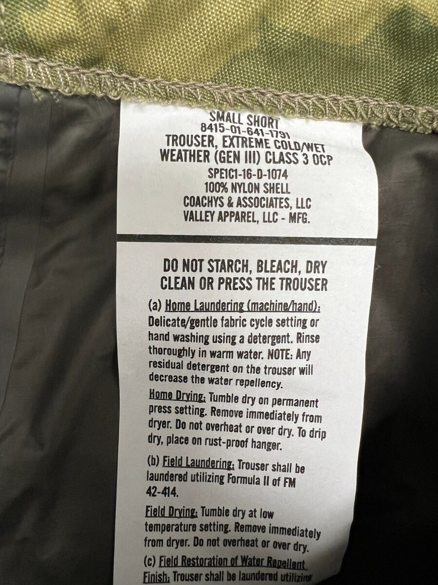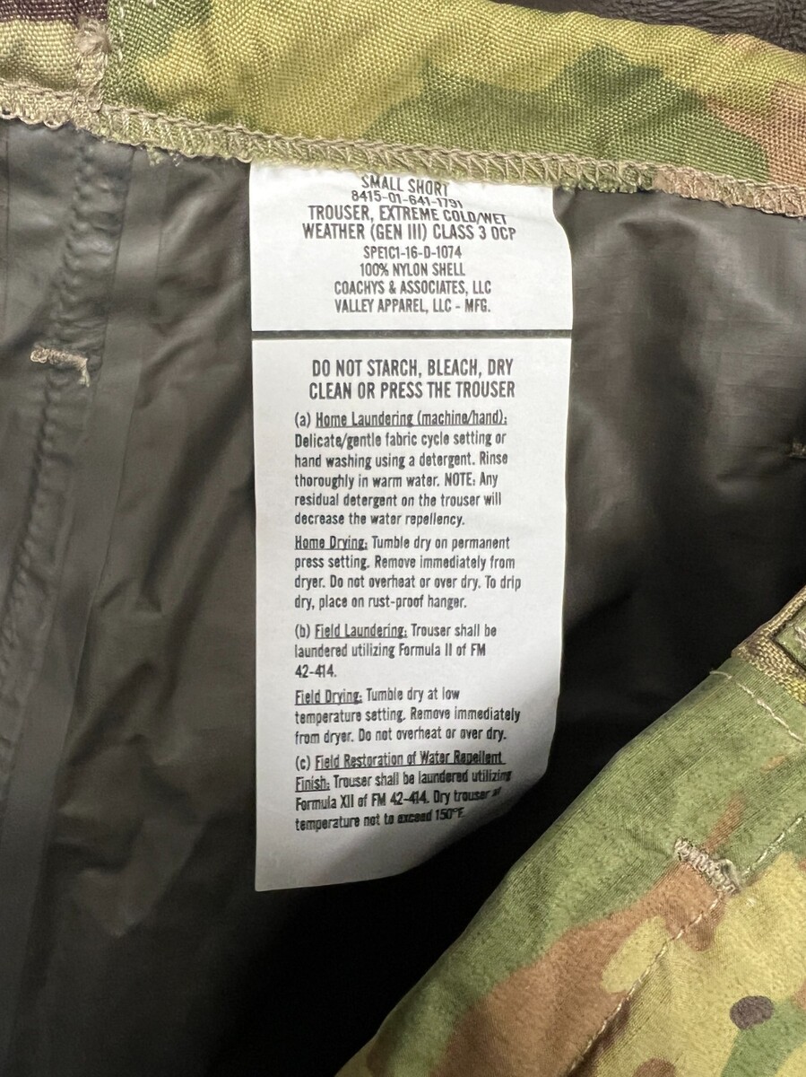 USGI ECWCS MULTICAM GEN III LEVEL 6 EXTREME COLD/WET WEATHER PANTS - SMALL SHORT