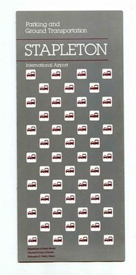 An 8 panel fold out on heavy stock. Stapleton International Airport Parking Transportation Guide . With maps, visitor information, airport map and more. Circa early 1990's.