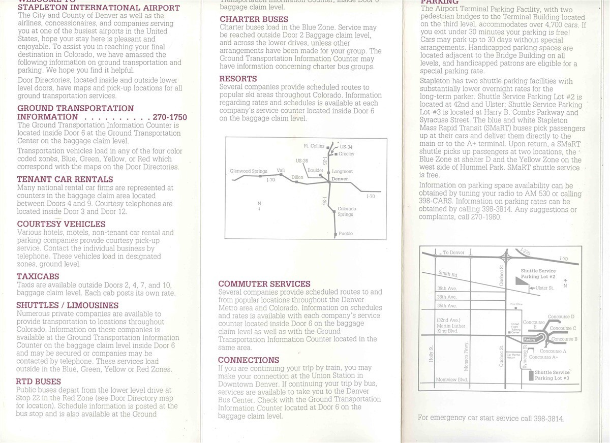 Stapleton International Airport Parking & Transportation Guide 1990's