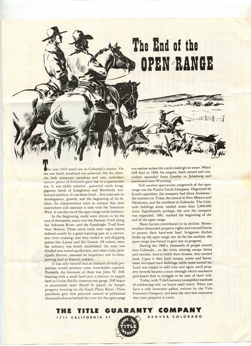 A 4 page Red Rocks Music Festival Program, featuring Jorge Bolet Pianist. From 1955 at the Red Rocks Theatre in Denver , Colorado. The center pages has an illustrated article on The End of the Open Range, sponsored by The Title Guaranty Company . Has Yehudi Menuhin photo and information on the back cover
