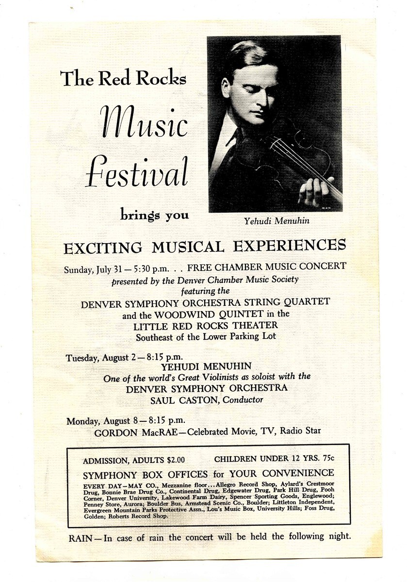 Red Rocks Music Festival Program Jorge Bolet Pianist 1955 Denver Yehudi Menuhin