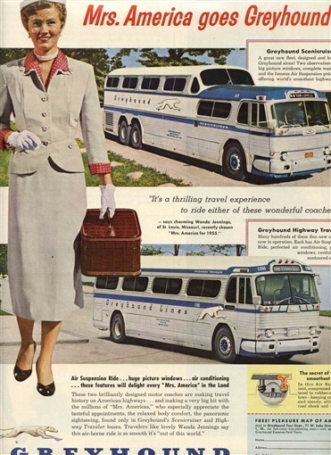 Mrs America Goes Greyhound Magazine Ad 1950's Scenicruiser Highway Traveler