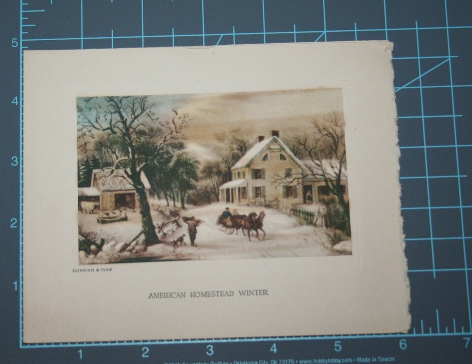 VINTAGE 1940s WWII ERA Christmas Greeting Card AMERICAN HOMESTEAD Currier & Ives