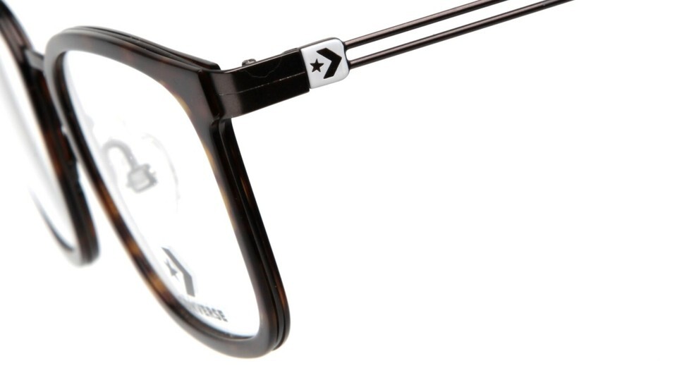 This model features the following temple detail: Laser engraved logo with epoxy fill. HD printed converse pattern detail.