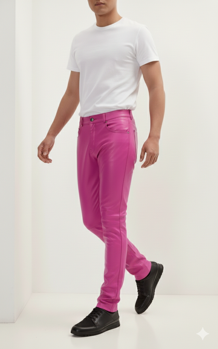Handgefertigte stilvolle lassige Party echtes weiches Lammleder Biker Lederhose für Herren pink \ MN