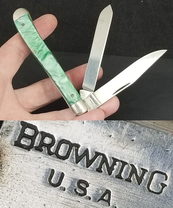 Vintage Browning USA pocket knife green mother of pearl trapper