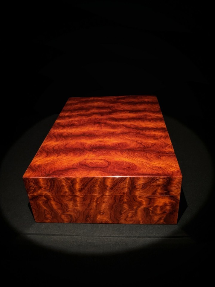 With its sleek design and impressive storage capabilities, this humidor is perfect for both casual smokers and serious collectors alike. Whether you're looking to add to your tobacciana collection or simply searching for a stylish way to store your cigars, this Elie Bleu humidor is sure to impress. These photos are of the last one we sold. Each humidor is hand crafted and can vary depending on the woods used at the time. We ship fully insured with signature required upon delivery.