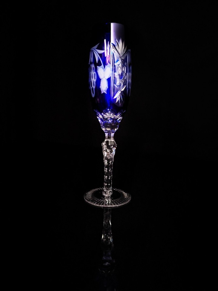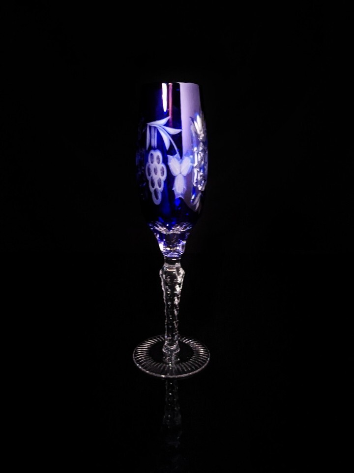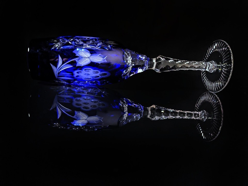 ajka marsala crystal cobalt blue champagne flute 9" Tall