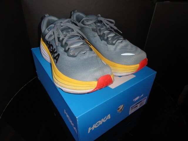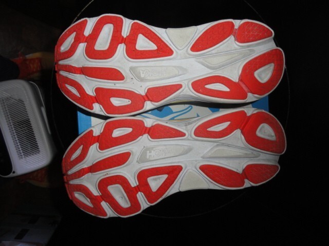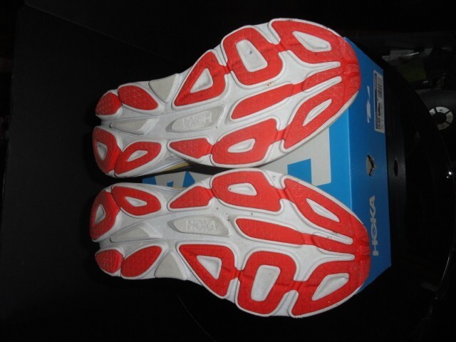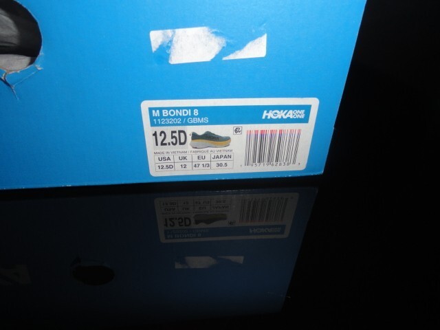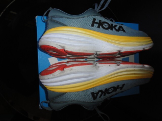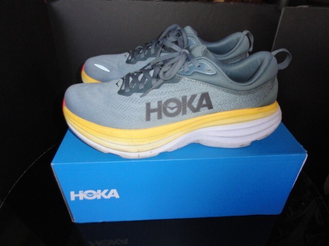 โGood condition, has a puncture on left shoe, comes in Hoka One Boxโ |