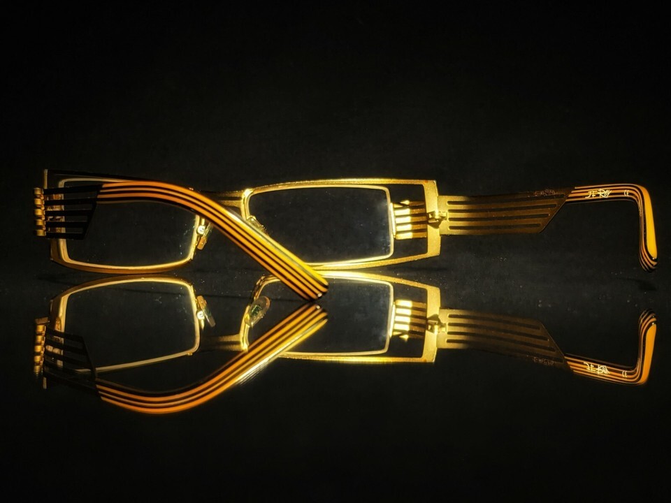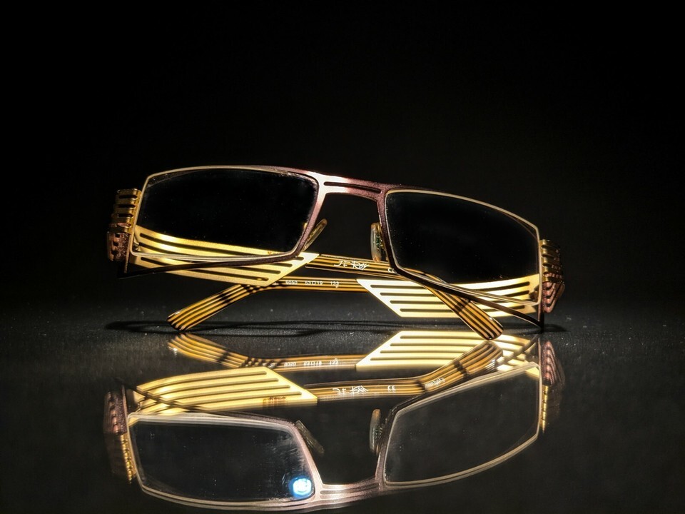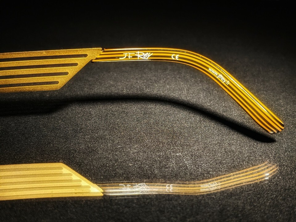 Elevate your eyewear collection with these JF Rey Eyeglasses in model JF2251. The aviator-style frame is made of lightweight gold metal, with a solid pattern and a vintage-inspired design that never goes out of style. The brown polycarbonate lenses provide UVC protection and offer single vision technology, making them perfect for everyday use. These eyeglasses were manufactured between 2010-2019 in France by J.F. Rey, a well-known and respected brand in the eyewear industry.
