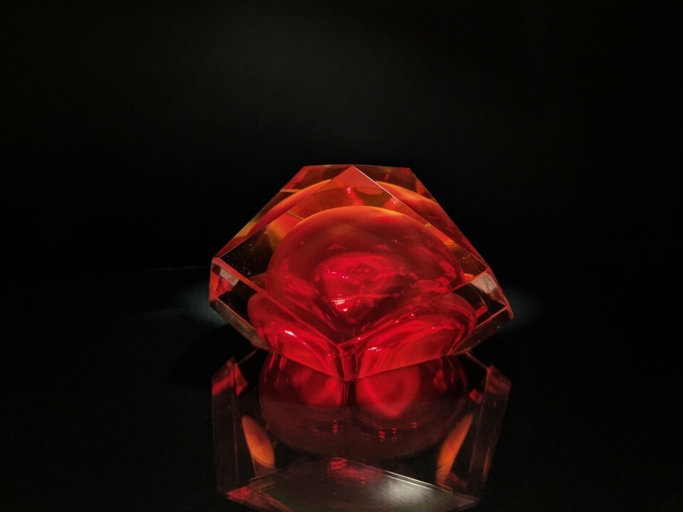 Sommerso Murano Flavio Poli Yellow & Red Faceted Glass Ashtray Italy #9544