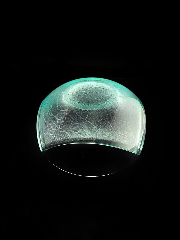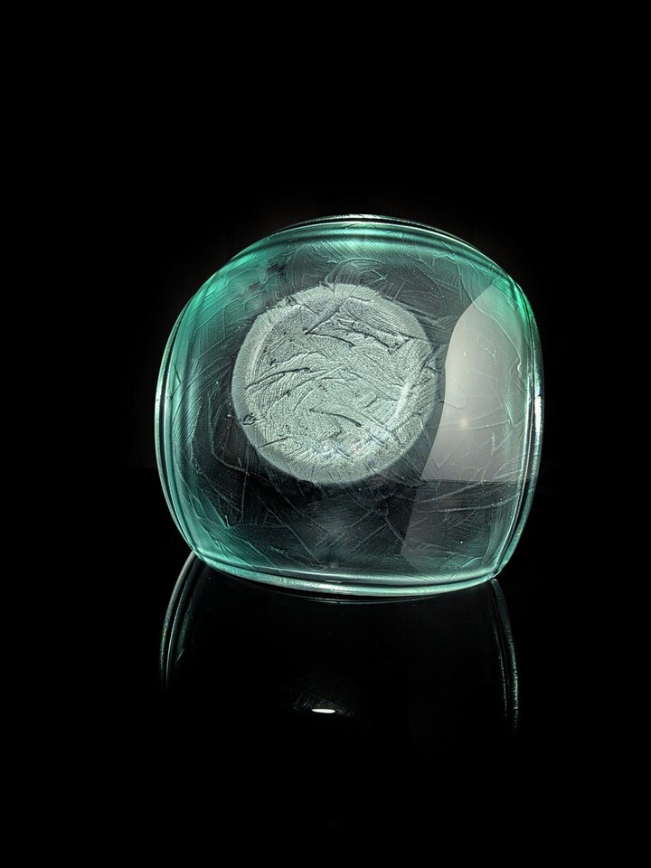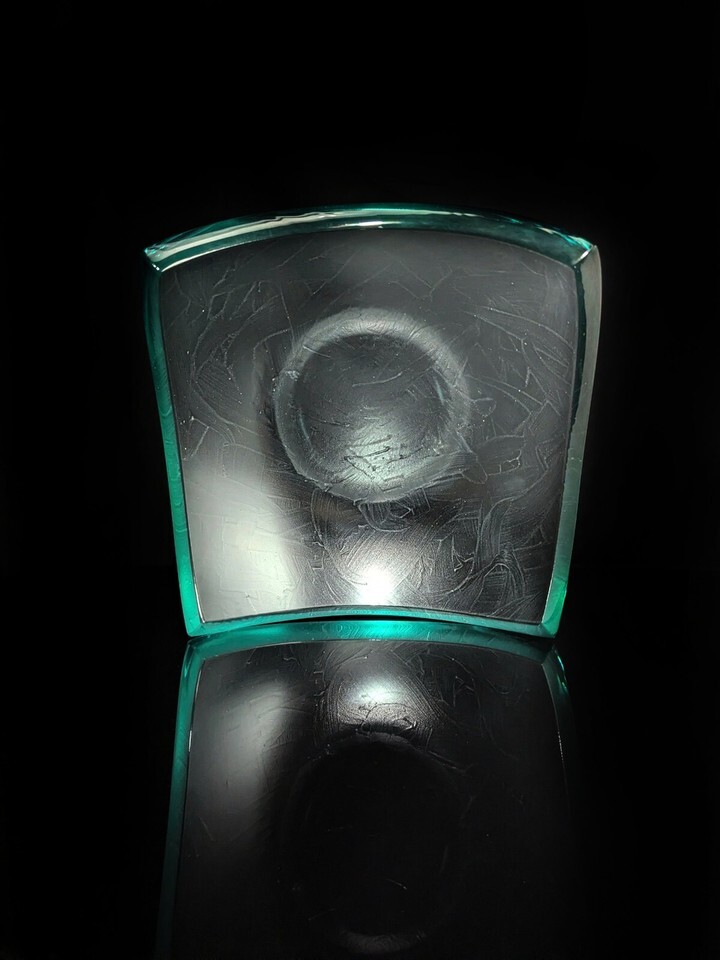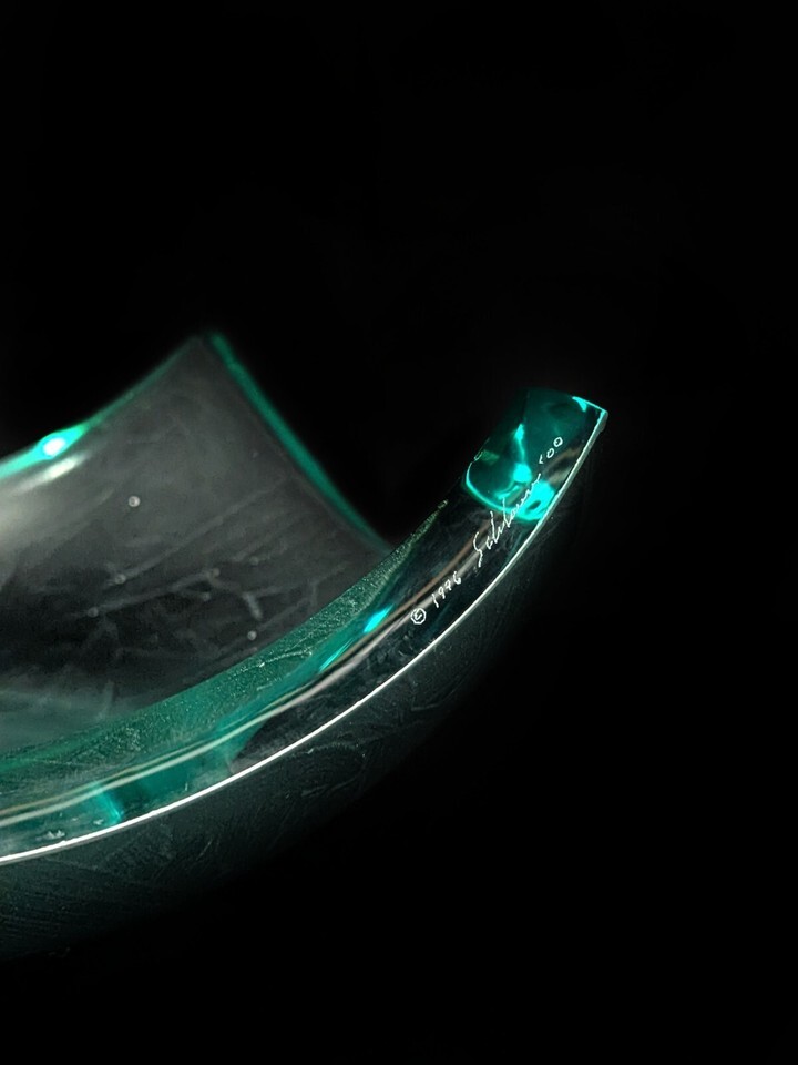 This exquisite bowl by Stephen Schlanser is a true work of art. Its beautiful green color and intricate swirl pattern make it a stunning addition to any collection. The bowl is made of high-quality, hand-blown glass and measures 9.5 inches in diameter by 4 inches in height.