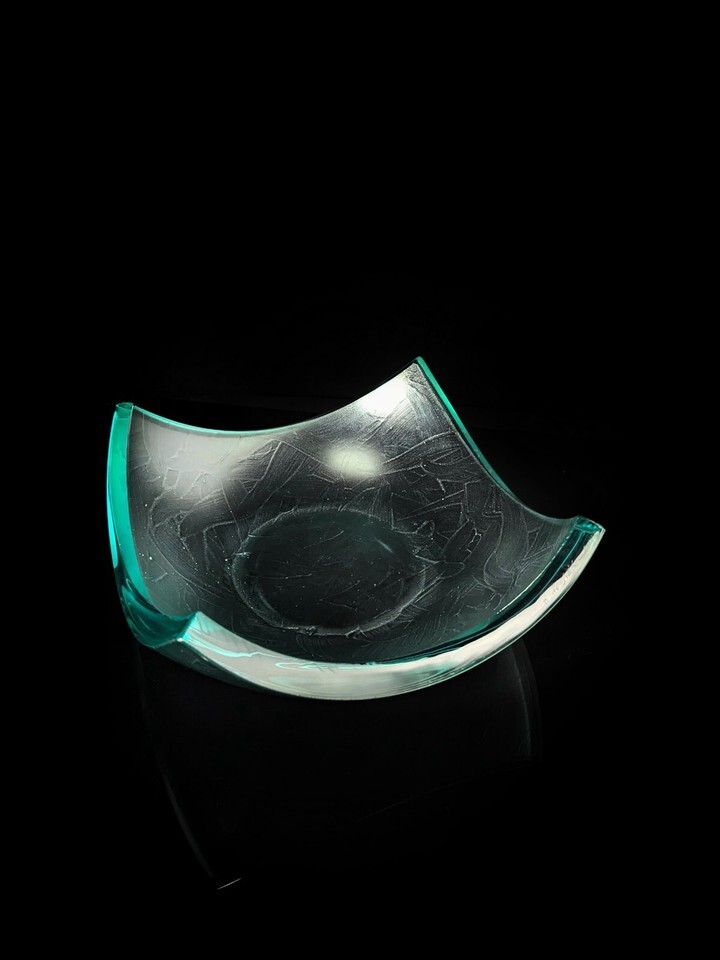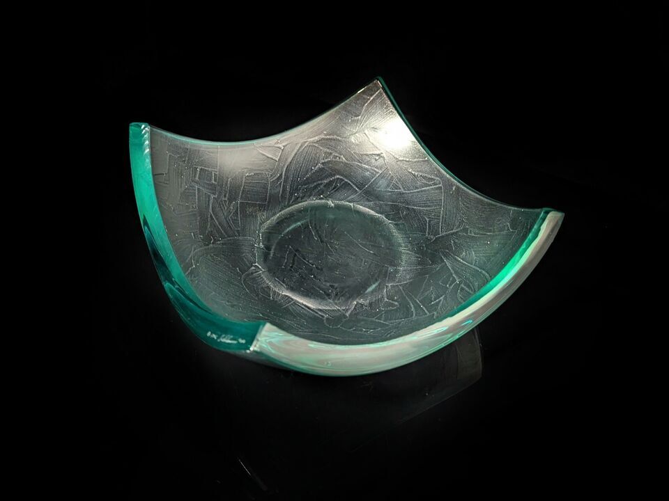 Stephen Schlanser Jade Art Glass Bowl Brush Stokes Measures 9.5" Square by 4" H
