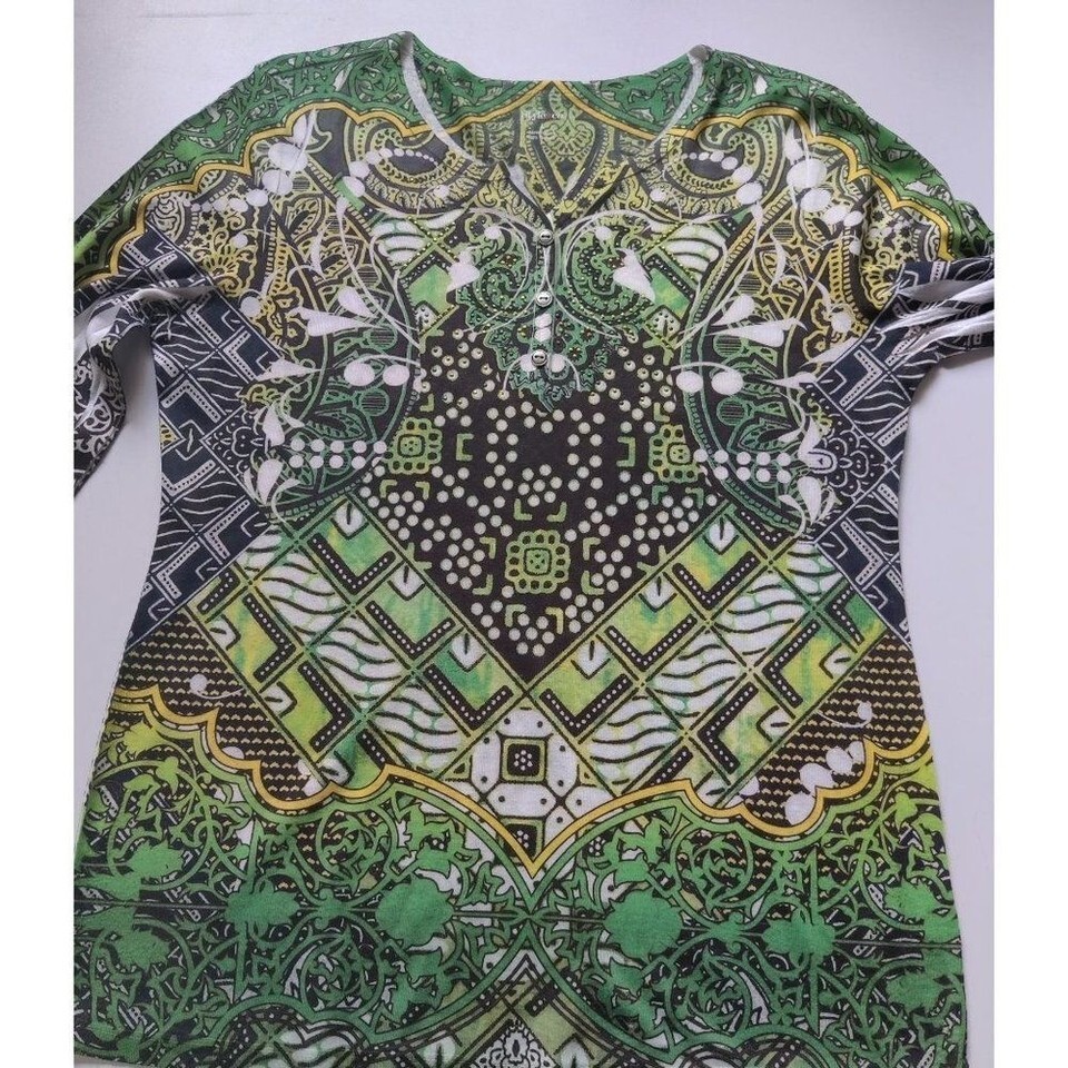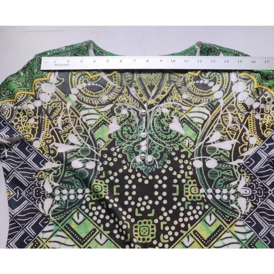 Style & Co Large Women's Multicolor 100% Polyester V-Neck 3/4 Sleeve Casual Top