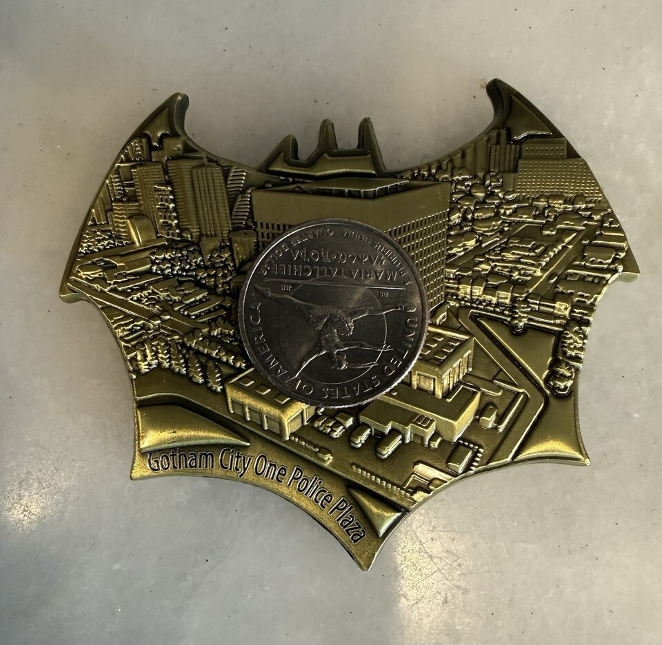 The Batman Gotham City 1PP Challenge Coin is a unique collectible item featuring the iconic character BatMan from the US Comics series Batman. This challenge coin serves as a symbol of bravery and resilience, making it a coveted piece for fans and collectors alike. With its design inspired by the dark and gritty world of Gotham City, this coin is a must-have for any true Batman enthusiast.