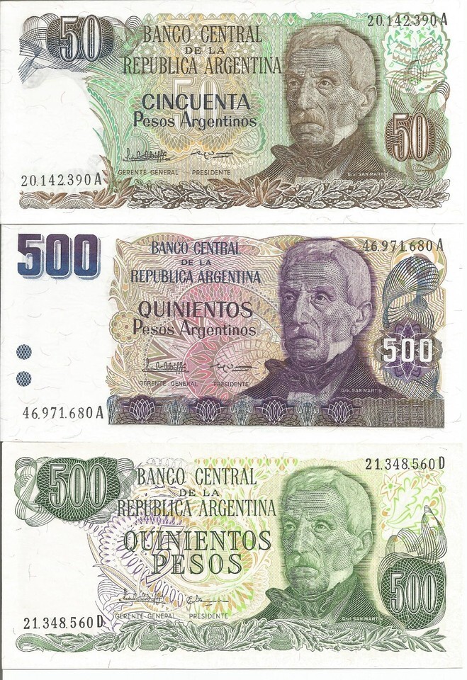 Argentina 3 Notes 50, 500, 500 Pesos UNC and 50 similar items